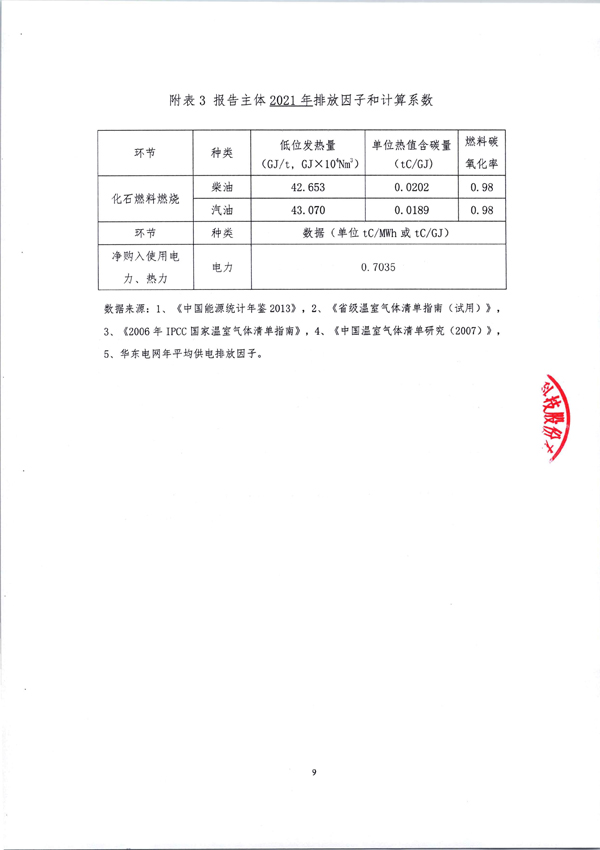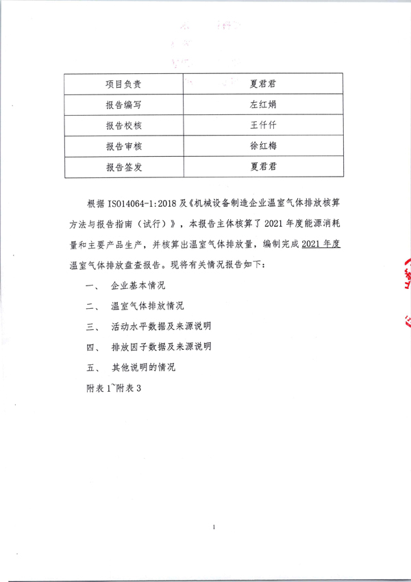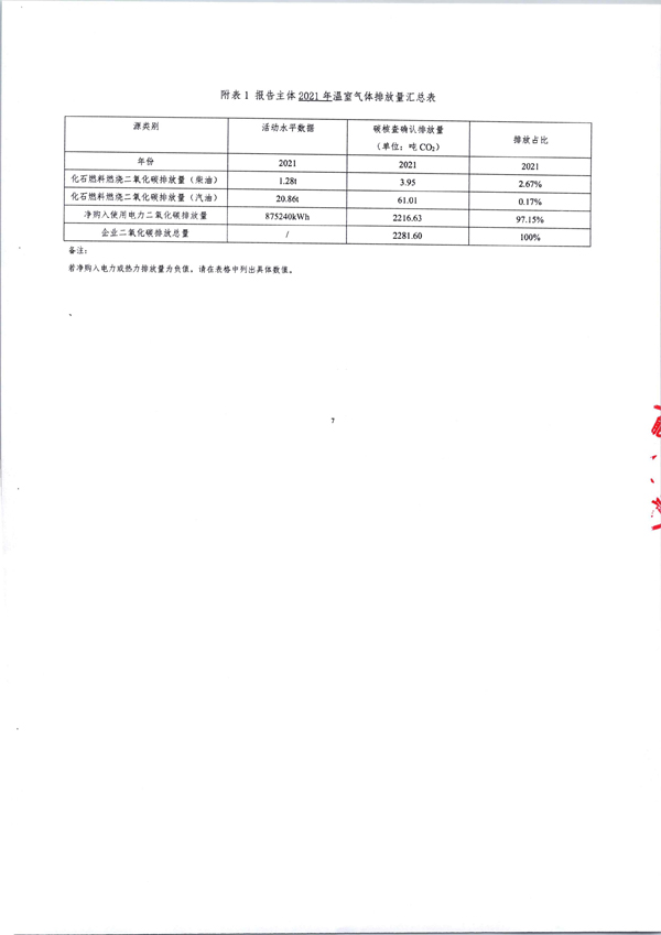 2021年年度温室气体排放盘查报告
